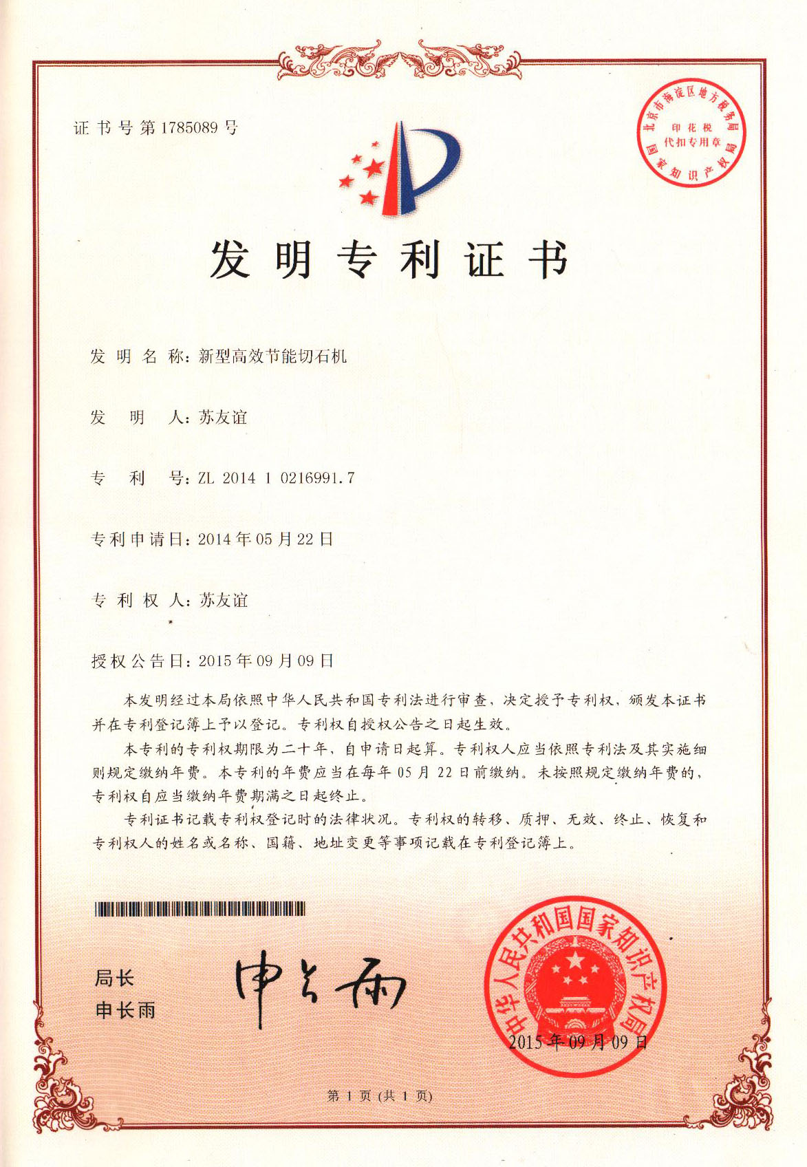 發(fā)明專(zhuān)利證書(shū)(仿冒必究) 查詢(xún)(點(diǎn)擊)